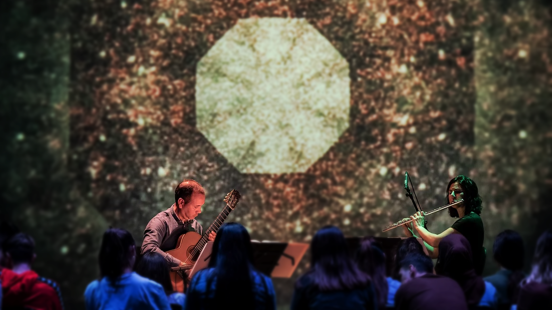 El dúo de flauta y guitarra integrado por Ana Ramón y Sergio Hernández trabaja conjuntamente en distintas formaciones de cámara desde el año 2003, abarcando un repertorio muy variado original y adaptado a esta formación.